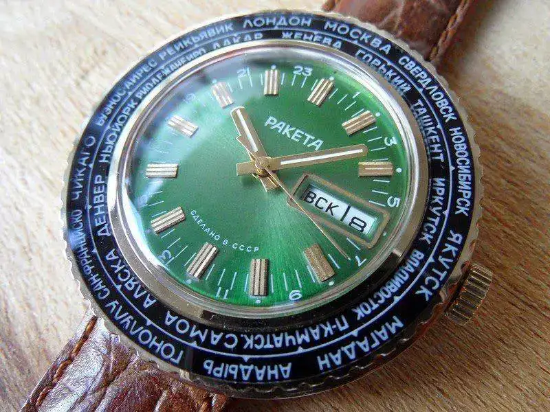 A diferencia de otros relojes que se venden como "rusos", los Raketa se fabrican realmente en Rusia, con movimientos rusos y la temática de sus diales son de clara inspiración soviética.